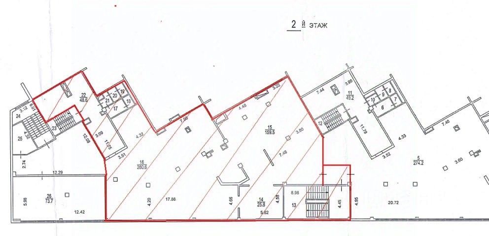 Этот лот состоит из нескольких помещений: 505 кв. м., 547 кв. м. и 150 кв. м.