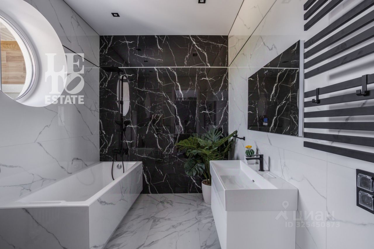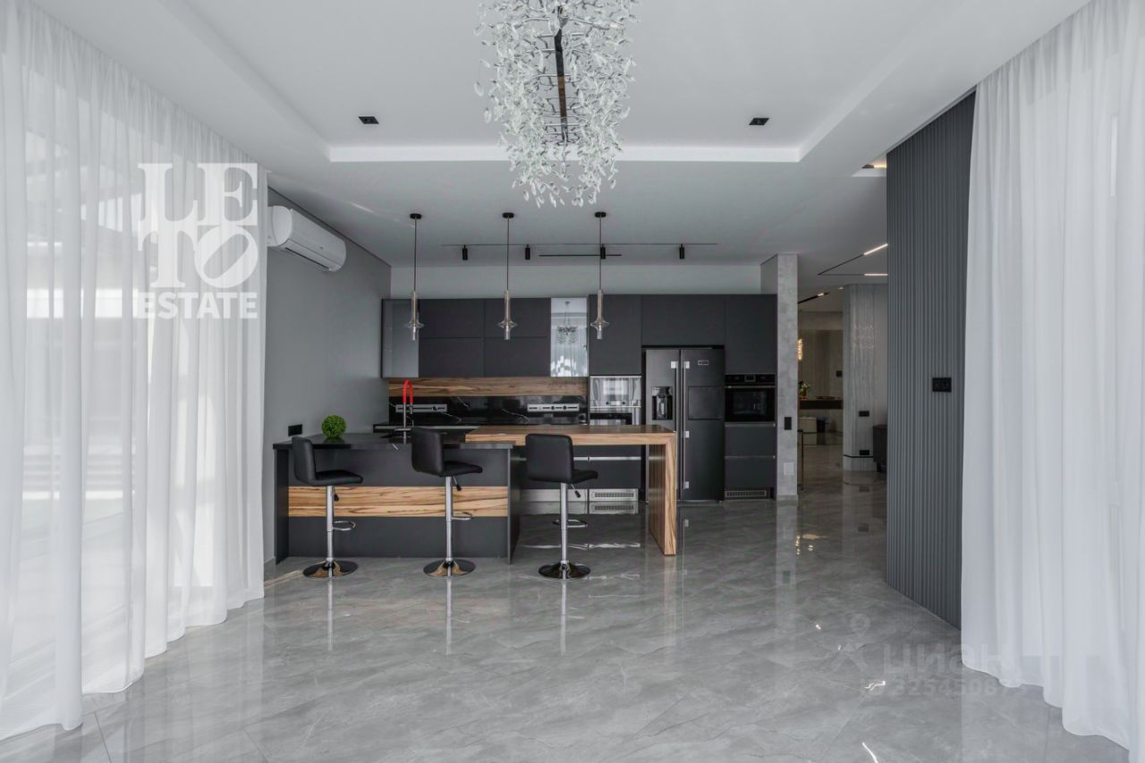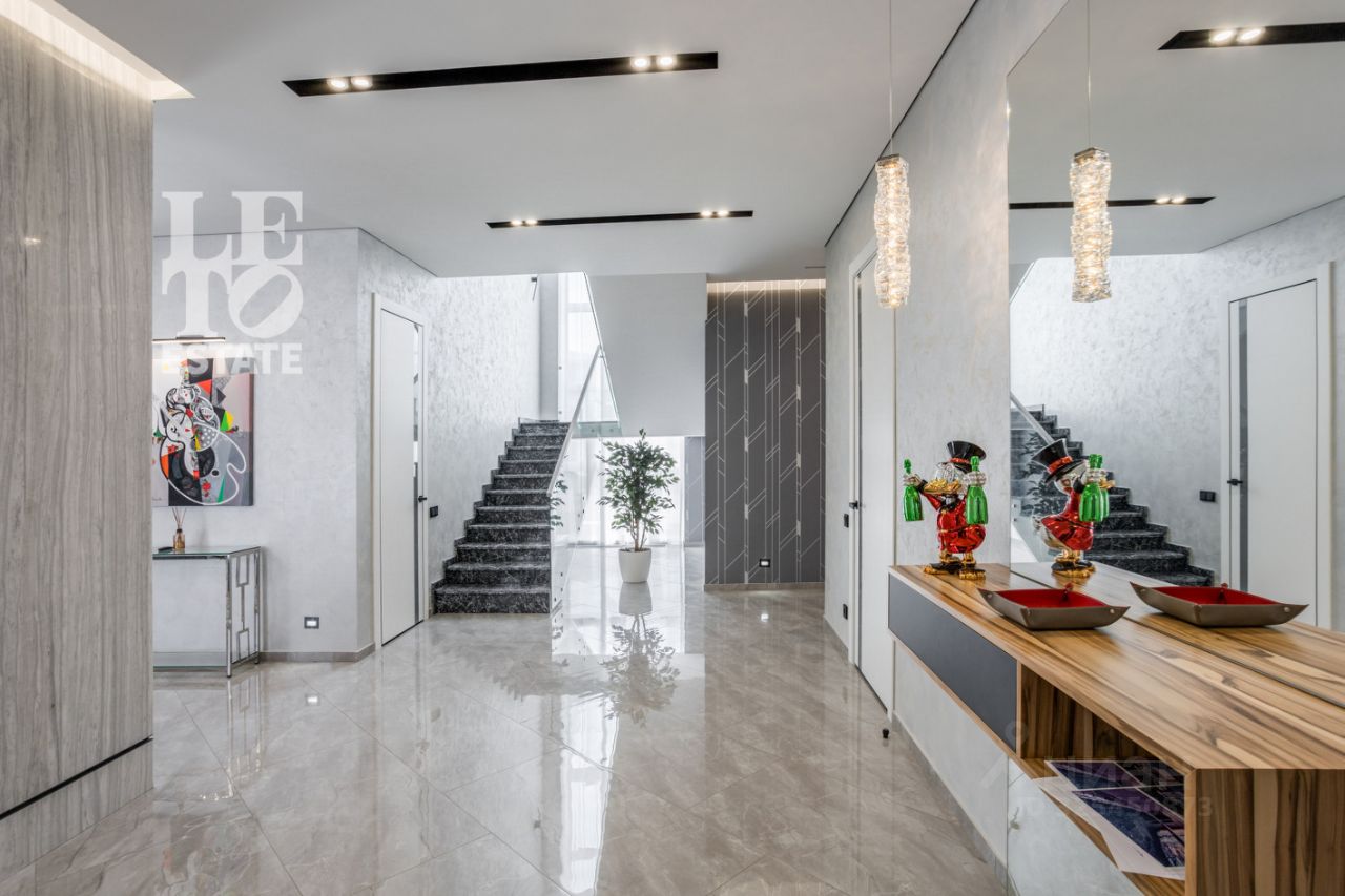 Архитектура в стиле современной классики гармонично вписана в ландшафт, а интерьеры в спокойной цветовой гамме создают атмосферу уюта и стиля. Панорамные окна Rehau обеспечивают обилие света и воздуха в любое время года. Конструктивные особенности и инженерные системы: комбинированный фундамент (лента + плита), кирпичные стены с усиленным утеплением, четырёхслойная кровля, фасадная отделка клинкером WhiteHills, железобетонная лестница с мраморной облицовкой, система вентиляции, встраиваемый пылесос, четыре кондиционера, многоступенчатая водоподготовка с защитой от протечек. На кухне установлена мебель от студии ''Giulia Novars'' с функциональным островом, бытовая техника Kuppersbusch и LIEBHERR, варочная панель Bora с вытяжкой, каменная и столешница.