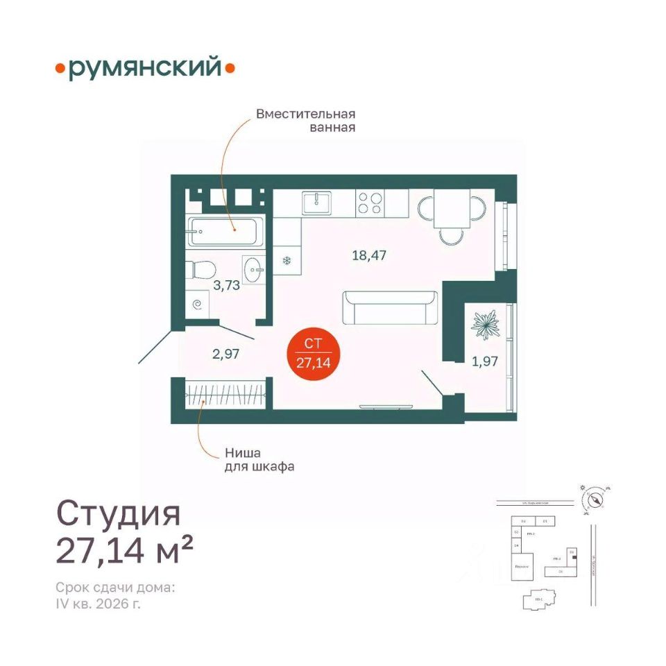 Общая площадь27,14 м2