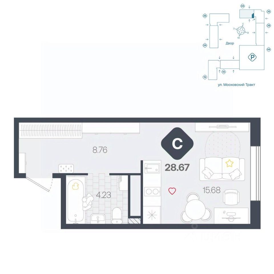 продам 1-к, Московский тракт, 17143 244 000 ₽