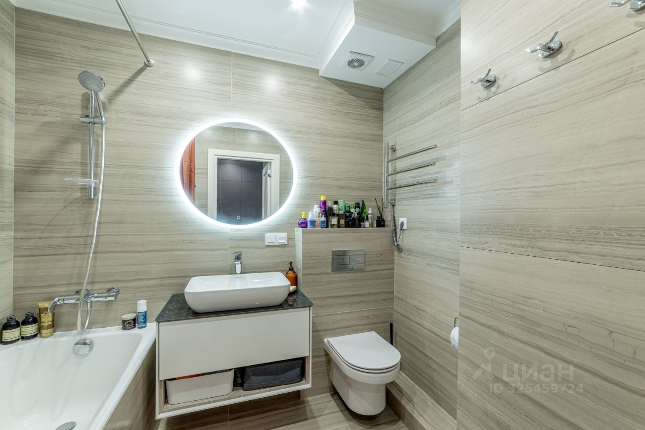 Прекрасная видовая квартира в жилом комплексе бизнес-класса ''МАЯКОВСКИЙ'' (огороженная территория, двор без машин, ландшафтное озеленение и мощение, тематические игровые и спортивные площадки, подземный паркинг, свой фитнес клуб с бассейном на 6 дорожек по 25 м). Монолитный дом 2019 года постройки (все ремонты в доме уже завершены). Практичная планировка - просторная евро-двушка. Перед окнами открывается шикарный живописный вид. Сделан стильный, качественный ремонт. Планировка: кухня-гостиная, мастер спальня со своей гардеробной, санузел с ванной (не душевой кабиной). Высота потолка 2,85 м. Окна на восток. Межкомнатные двери Волховец, сантехника Якобс Делафон, керамогранит - Эталон. Стены окрашены краской Little Greene (Великобритания).