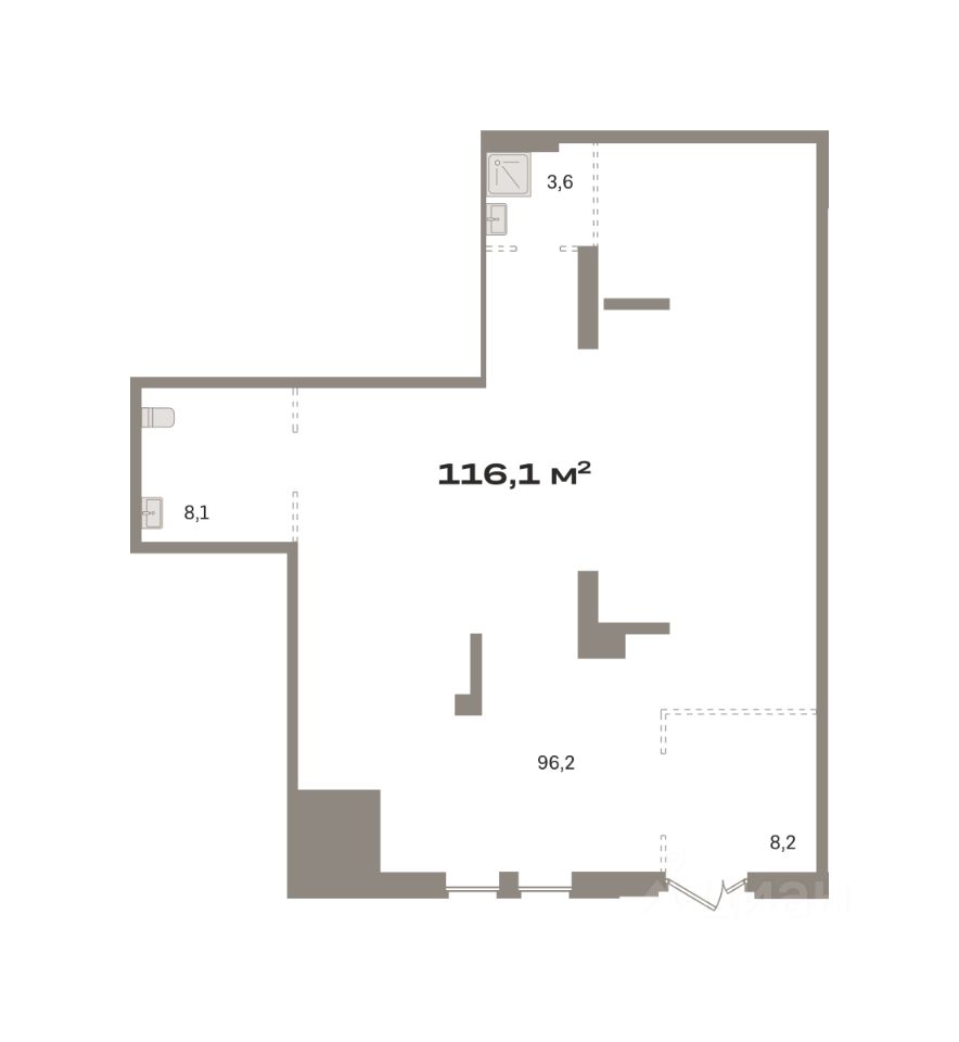 — Цементно-песчаная стяжка пола — Высота потолков от 3,9 метров — Отдельный вход в каждое помещение — Витражное остекление — Инженерные коммуникации: водоотведение, канализация, вентиляция, электричество