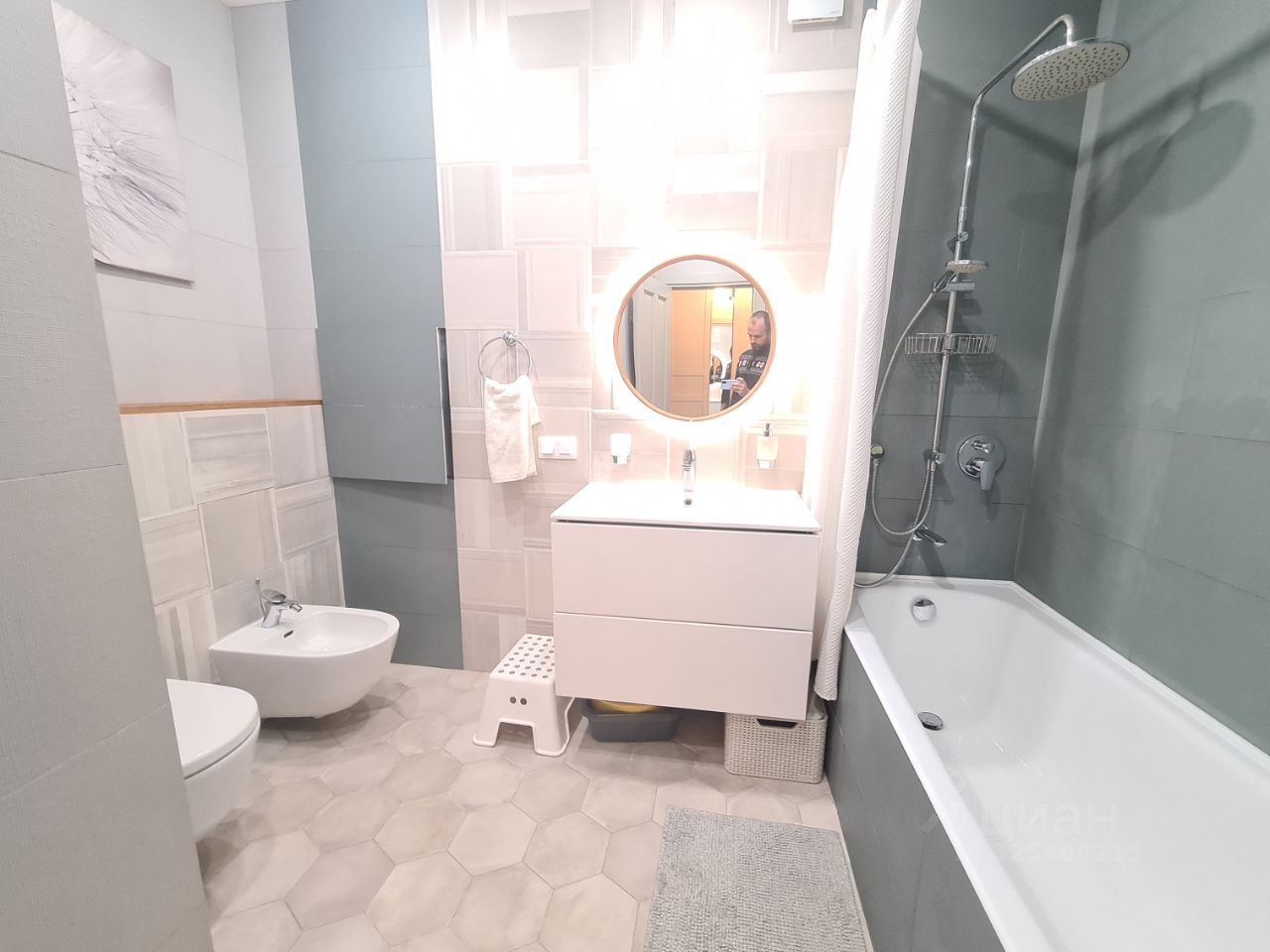 В квартире имеется вся необходимая мебель и техника премиум класса (посудомоечная машина, холодильник, кондиционер, стиральная машина, сушильная машина,теплый пол, высокоскоростной интернет, телевизор, духовой шкаф, холодильник), продумано много мест хранения.