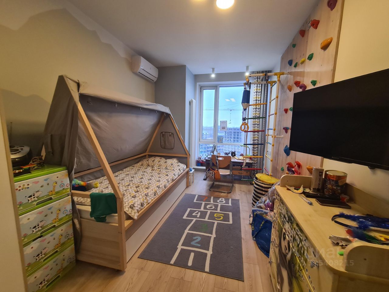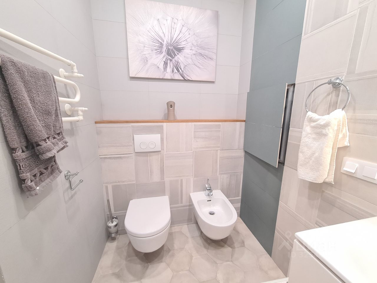 Планировка: кухня-гостиная, спальня с гардеробной, детская комната, ванная комната, гостевой санузел.