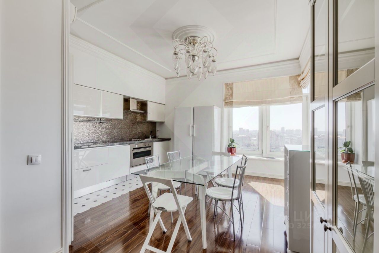 Квартира с готовой классической меблировкой и техникой от ведущих европейских производителей. Ключевые черты интерьера - сочетание фактур: теплое натуральное дерево, изящная белая лепнина и стильный декоративный кирпич. Панорамные окна открывают виды на город, а ощущение простора подчеркивают трехметровые потолки.