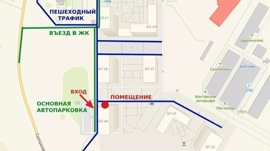 Помещение расположено на пешеходном трафике от авт. остановки, напротив основной парковки в ЖК ''Мой адрес на Салтыковской''.В ЖК 9 корпусов высотностью 1224 этажа.Школа на 550 мест с дошкольным отделением на 225 мест (2026 г.)50/50 соотношение квартир по реновации и для продажи.Ключи выдаются с мая 2023г. Характеристики локации: