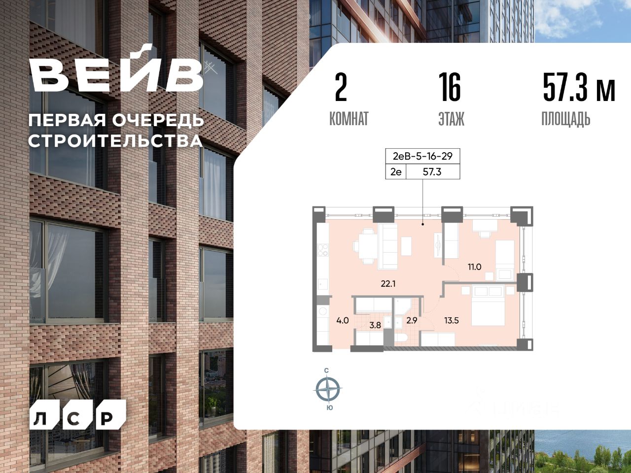 Продается 2-комн. кв-ра площадью 57.90 кв.м на 16 этаже 29 этажного монолитного дома в ЖК ''ВЕЙВ'' от Группа ЛСР. Ключевым преимуществом ВЕЙВ является благоустроенная набережная со смотровой площадкой, беговыми и велодорожками, детскими и спортивными. В центре квартала появится зеленый пешеходный бульвар с детскими и спортивными площадками, а также зоной тихого отдыха. Вокруг жилого квартала сосредоточены более 2000 га зеленых пространств: парк ''Борисовские пруды'', Братеевский каскадный парк, парк 850-летия г. Москвы, музеи-заповедники ''Царицыно'' и ''Коломенское''. Особое внимание в ВЕЙВ уделено интерьерам лобби, выполненным в современном стиле с яркими акцентами. Стильное пространство разделено на несколько зон: ресепшен, зона ожидания с Wi-Fi и мягкими креслами, колясочная и лаконичный лифтовый холл. Для автомобилистов предусмотрен двухуровневый подземный паркинг с видеонаблюдением, усилителем сотовой связи и системой распознавания номеров.