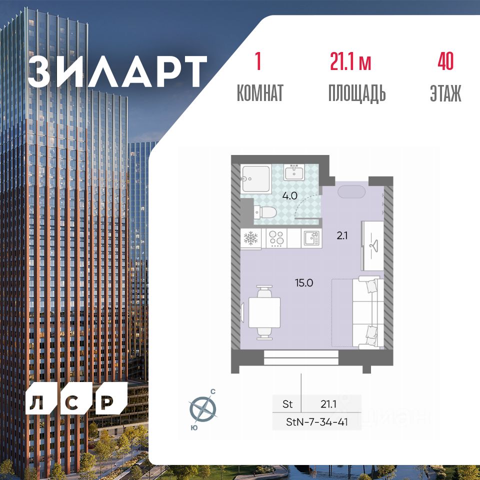 Продается квартира студия площадью 21.10 кв.м на 40 этаже 43 этажного монолитно-кирпичного дома в ЖК ''ЗИЛАРТ'' от Группа ЛСР. ЗИЛАРТ СПАРК — новый дом бизнес-класса в жилом квартале ''ЗИЛАРТ'' высотой 150 метров. Он сочетает в себе современную архитектуру, передовые технологии и восхитительные виды на ландшафтный парк ''Тюфелева Роща'' и бульвар Братьев Весниных. Близкое расположение к музейно-выставочному центру ''Коллекция'' и концертному залу создает вдохновляющую атмосферу места, где переплетаются жизнь и творчество.