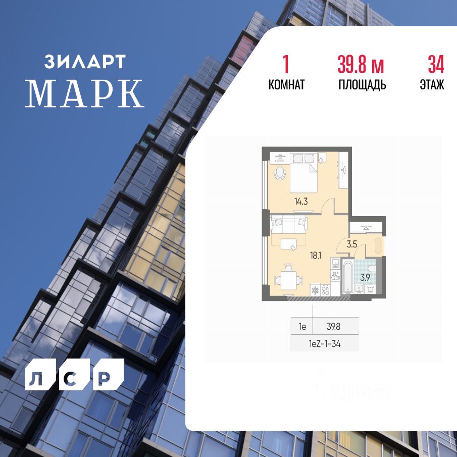 Продается 1-комн. кв-ра площадью 39.80 кв.м на 34 этаже 43 этажного монолитно-кирпичного дома в ЖК ''ЗИЛАРТ'' от Группа ЛСР. ЗИЛАРТ МАРК — премиальный дом на первой линии Москвы-реки в жилом квартале ''ЗИЛАРТ''. Дом состоит из трех жилых корпусов: 12, 18 и 43 этажей. Архитектура уникальна: разноцветные сегменты витражей панорамного остекления подобны полотнам Пита Мондриана. Терраса на 35 этаже для резидентов. Роскошная отделка лобби. Премиальное инженерное оборудование. Квартиры с террасами и двухуровневые квартиры.