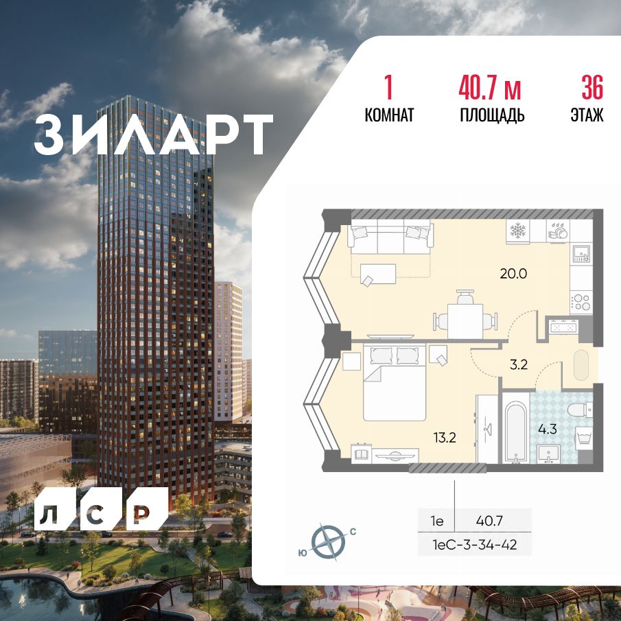 Продается 1-комн. кв-ра площадью 40.70 кв.м на 36 этаже 43 этажного монолитно-кирпичного дома в ЖК ''ЗИЛАРТ'' от Группа ЛСР. ЗИЛАРТ СПАРК — новый дом бизнес-класса в жилом квартале ''ЗИЛАРТ'' высотой 150 метров. Он сочетает в себе современную архитектуру, передовые технологии и восхитительные виды на ландшафтный парк ''Тюфелева Роща'' и бульвар Братьев Весниных. Близкое расположение к музейно-выставочному центру ''Коллекция'' и концертному залу создает вдохновляющую атмосферу места, где переплетаются жизнь и творчество.