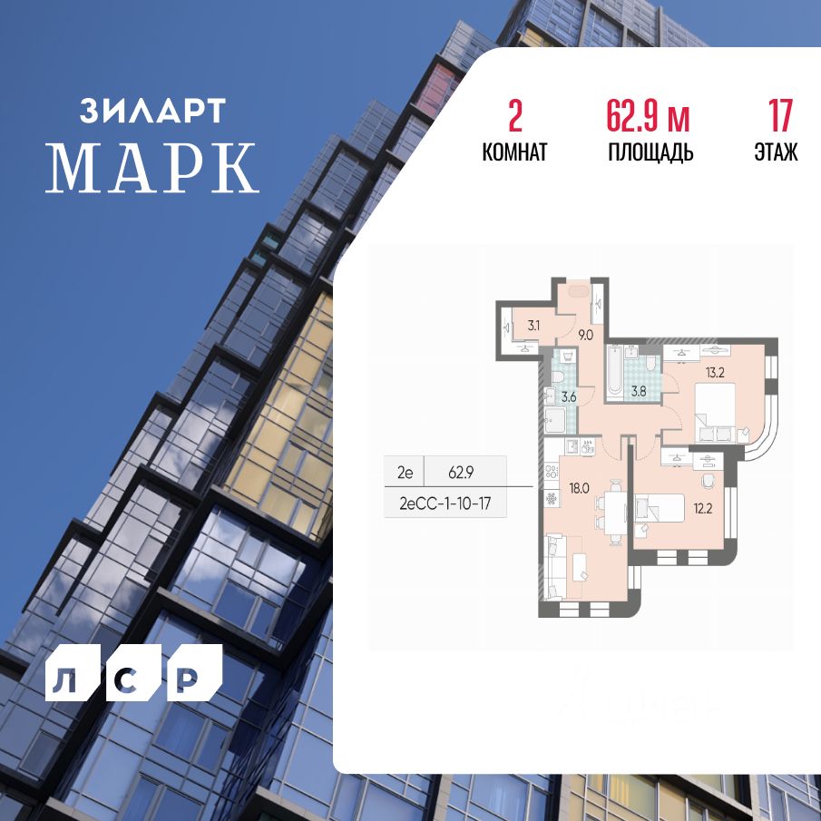 Продается 2-комн. кв-ра площадью 62.90 кв.м на 17 этаже 18 этажного монолитно-кирпичного дома в ЖК ''ЗИЛАРТ'' от Группа ЛСР. ЗИЛАРТ МАРК — премиальный дом на первой линии Москвы-реки в жилом квартале ''ЗИЛАРТ''. Дом состоит из трех жилых корпусов: 12, 18 и 43 этажей. Архитектура уникальна: разноцветные сегменты витражей панорамного остекления подобны полотнам Пита Мондриана. Терраса на 35 этаже для резидентов. Роскошная отделка лобби. Премиальное инженерное оборудование. Квартиры с террасами и двухуровневые квартиры.