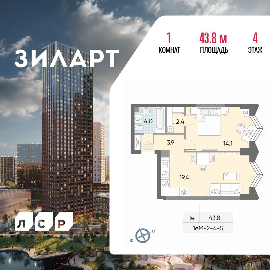 Продается 1-комн. кв-ра площадью 43.80 кв.м на 4 этаже 43 этажного монолитно-кирпичного дома в ЖК ''ЗИЛАРТ'' от Группа ЛСР. ЗИЛАРТ СПАРК — новый дом бизнес-класса в жилом квартале ''ЗИЛАРТ'' высотой 150 метров. Он сочетает в себе современную архитектуру, передовые технологии и восхитительные виды на ландшафтный парк ''Тюфелева Роща'' и бульвар Братьев Весниных. Близкое расположение к музейно-выставочному центру ''Коллекция'' и концертному залу создает вдохновляющую атмосферу места, где переплетаются жизнь и творчество.