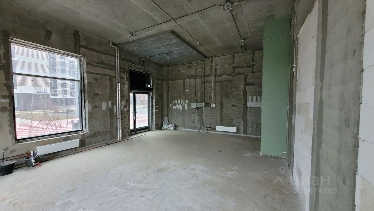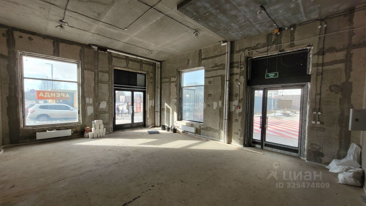 Тип здания: жилой дом , помещение встроенное, Уровень: первый этаж, Высота потолка, h= 3.75 м, Оконная группа: витрины, Входов: 2, отдельный,с основного фасада, Кол-во ступеней: 0, Электрическая мощность: 12 кВт, III категория, 380В-3 фазы, Вентиляция: автономная на крышу, Состояние: shell&core (бетон)