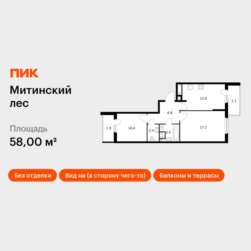 Продаётся 2-комн. квартира площадью 58 кв.м на 24 этаже 24 этажного дома (Корпус 15, Секция 2) проекта ПИК Митинский лес. Светлый просторный подъезд на уровне земли, функциональная планировка, большие окна, без отделки.