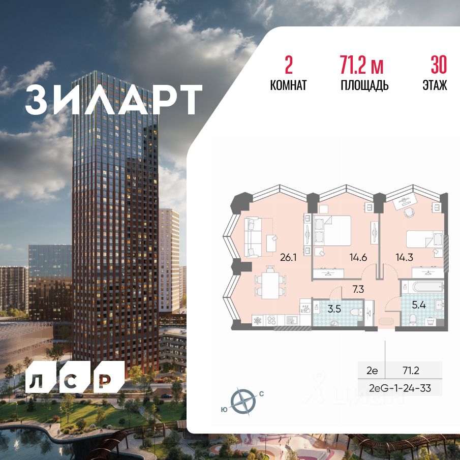 Продается 2-комн. кв-ра площадью 71.20 кв.м на 30 этаже 43 этажного монолитно-кирпичного дома в ЖК ''ЗИЛАРТ'' от Группа ЛСР. ЗИЛАРТ СПАРК — новый дом бизнес-класса в жилом квартале ''ЗИЛАРТ'' высотой 150 метров. Он сочетает в себе современную архитектуру, передовые технологии и восхитительные виды на ландшафтный парк ''Тюфелева Роща'' и бульвар Братьев Весниных. Близкое расположение к музейно-выставочному центру ''Коллекция'' и концертному залу создает вдохновляющую атмосферу места, где переплетаются жизнь и творчество.