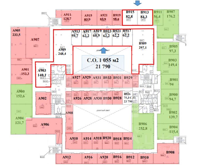 Этот лот состоит из нескольких помещений: 237 кв. м., 114 кв. м., 293 кв. м., 297 кв. м. и 155 кв. м.