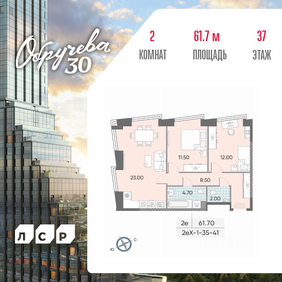 Продается 2-комн. кв-ра площадью 61.70 кв.м на 37 этаже 45 этажного монолитного дома в ЖК ''ОБРУЧЕВА 30'' от Группа ЛСР. ''Обручева 30'' - дом бизнес-класса в престижном районе ЮЗАО и шаговой доступности от станции метро ''Калужская''. Два корпуса неповторимой формы от бюро KAMEN Architects с уникальными форматами квартир: от двухуровневых с камином до квартир с террасой. ''Клубная'' инфраструктура для резидентов: студии йоги и сайкла, тренажерные залы, коворкинг-зона, конференц-залы, кинозал и детские игровые комнаты.