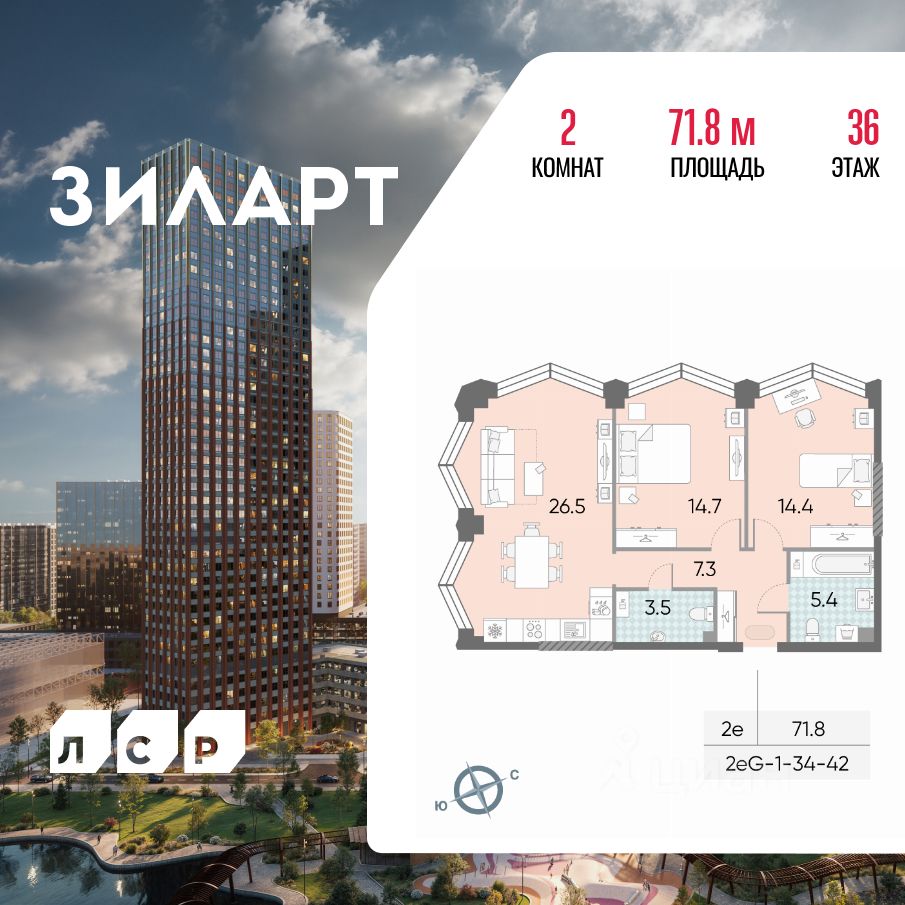 Продается 2-комн. кв-ра площадью 71.80 кв.м на 36 этаже 43 этажного монолитно-кирпичного дома в ЖК ''ЗИЛАРТ'' от Группа ЛСР. ЗИЛАРТ СПАРК — новый дом бизнес-класса в жилом квартале ''ЗИЛАРТ'' высотой 150 метров. Он сочетает в себе современную архитектуру, передовые технологии и восхитительные виды на ландшафтный парк ''Тюфелева Роща'' и бульвар Братьев Весниных. Близкое расположение к музейно-выставочному центру ''Коллекция'' и концертному залу создает вдохновляющую атмосферу места, где переплетаются жизнь и творчество.