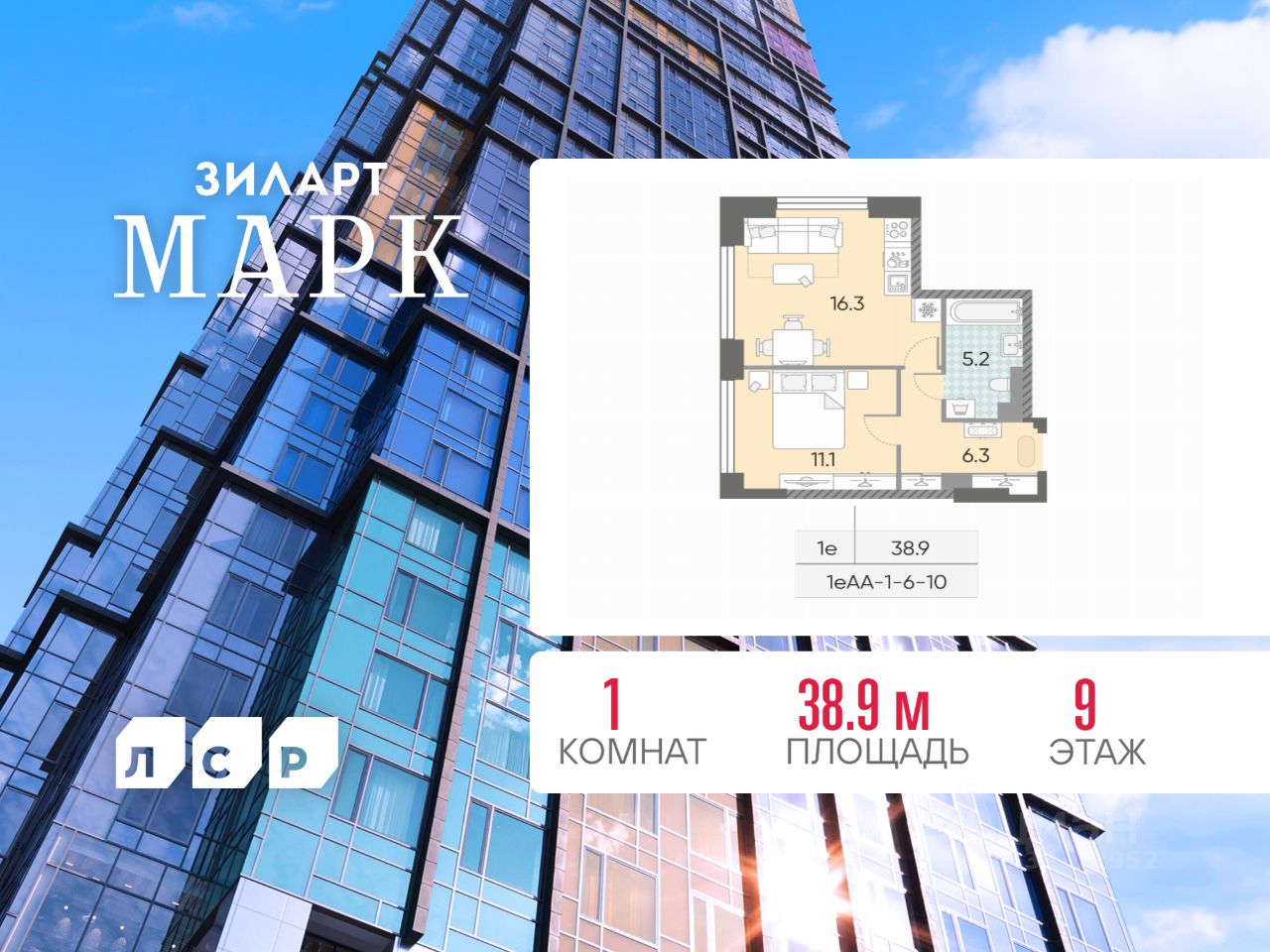 Продается 1-комн. кв-ра площадью 38.90 кв.м на 9 этаже 43 этажного монолитно-кирпичного дома в ЖК ''ЗИЛАРТ'' от Группа ЛСР. ЗИЛАРТ МАРК — премиальный дом на первой линии Москвы-реки в жилом квартале ''ЗИЛАРТ''. Дом состоит из трех жилых корпусов: 12, 18 и 43 этажей. Архитектура уникальна: разноцветные сегменты витражей панорамного остекления подобны полотнам Пита Мондриана. Терраса на 35 этаже для резидентов. Роскошная отделка лобби. Премиальное инженерное оборудование. Квартиры с террасами и двухуровневые квартиры.