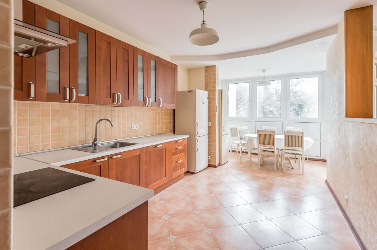 3-комнатная квартира в новом современном доме 3 / 12 этаж. Спален: 3, санузлов: 2. Общая площадь: 110 кв.м. Комнаты: 23-19-17 кв.м. Кухня: 20 кв.м. Высота потолков 3 м. Ремонт в современном европейском стиле. Консьерж. Подземный паркинг, машиноместо оплачивается отдельно. Окна выходят на обе стороны. Есть лоджия. В наличии: посудомоечная машина, холодильник, кондиционер, бойлер, ванна, стиральная машина. Телевизор, высокоскоростной интернет.
