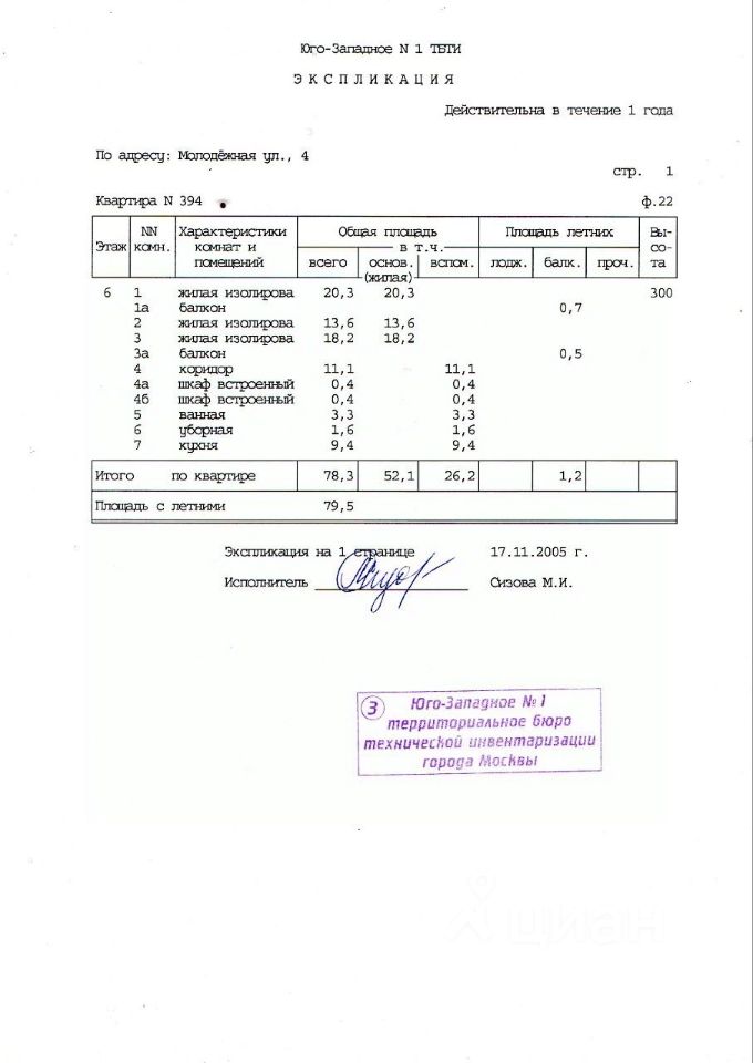 Предлагается к продаже 3-х комнатная квартира в Гагаринском районе города Москвы. 6 этаж 8-ми этажного постсталинского кирпичного дома 1958 года постройки. Общая площадь квартиры: 79.5 кв.м., жилая 52.1 кв.м. Все комнаты изолированные - 20.3 кв.м., 13.6 кв.м., 18.2 кв.м. кухня 9.4 кв.м., два балкона (застекленные), потолки - 3 метра. Адрес: г. Москва, ул. Молодежная, дом 4. Отличная квартира, в престижном, тихом и зеленом месте. Хорошая планировка, все комнаты изолированные, санузел раздельный. Окна на две стороны на зеленые скверы, прекрасный вид. Без перепланировок. Квартира в нормальном жилом состоянии. Ремонт желателен. Дом стоит в тихом месте, вдалеке от Ленинского, Университетского и Ломоносовского проспектов. Вблизи дома Большой Московский цирк и Парк им. 40-летия ВЛКСМ.