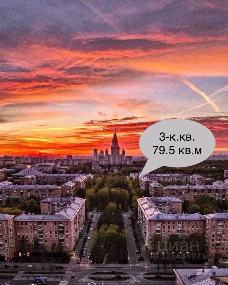 Предлагается к продаже 3-х комнатная квартира в Гагаринском районе города Москвы. 6 этаж 8-ми этажного постсталинского кирпичного дома 1958 года постройки. Общая площадь квартиры: 79.5 кв.м., жилая 52.1 кв.м. Все комнаты изолированные - 20.3 кв.м., 13.6 кв.м., 18.2 кв.м. кухня 9.4 кв.м., два балкона (застекленные), потолки - 3 метра. Адрес: г. Москва, ул. Молодежная, дом 4. Отличная квартира, в престижном, тихом и зеленом месте. Хорошая планировка, все комнаты изолированные, санузел раздельный. Окна на две стороны на зеленые скверы, прекрасный вид. Без перепланировок. Квартира в нормальном жилом состоянии. Ремонт желателен. Дом стоит в тихом месте, вдалеке от Ленинского, Университетского и Ломоносовского проспектов. Вблизи дома Большой Московский цирк и Парк им. 40-летия ВЛКСМ. 10-15 минут пешком главное здание МГУ, Ботанический сад, 20 минут пешком - Воробьевы горы. Вокруг много отличных школ - Физмат лицей ''Вторая школа'', лицей ''Воробьевы Горы'', Школа 1205, Школа 199, Школа 2086, ОК ''Юго-Запад'' и др. До станции метро Университет - 10 минут. Собственность с 2011 г., один собственник. Свободная продажа. Полная стоимость в договоре. В квартире никто не зарегистрирован.