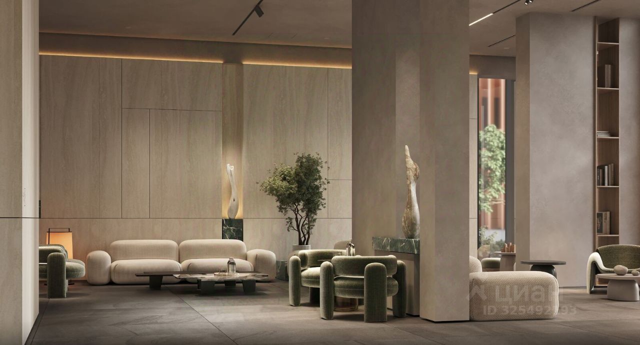 • дизайнерские лобби от бюро ABOVE ARCHITECTURE с панорамными окнами, интерьерами в теплой цветовой гамме и мягкой зоной ожидания располагаются в каждой башне,