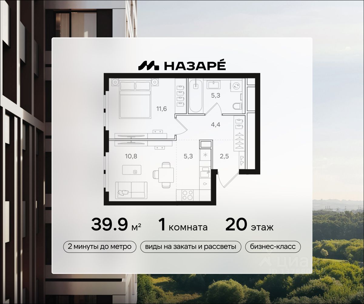 Просторная 1-комнатная квартира для молодой семьи. Общая площадь - 39.9м2, удобная планировка, кухня-гостиная 16.1м2. Панорамные виды из окон на две стороны - на национальный парк ''Лосиный остров'' и благоустроенный внутренний двор. Условия покупки: - Скидка при полной оплате - 10% - Ипотека от 3,5% на весь срок или 0,11% на первый год - Рассрочка без процентов - Trade-in с проживанием на время строительства дома НАЗАРЕ - шесть домов бизнес-класса высотой 24-43 этажа. Проект расположен рядом с национальным парком ''Лосиный остров'' и парком ''Сокольники''. В продаже квартиры с мастер-спальнями, кухнями-гостиными, открытыми террасами, просторными кладовыми и ванными с окном. Форматы - от светлых студий 21,6 м2 до семейных 4-комнатных 125,5 м2. Часть лотов - с предчистовой отделкой White Box. Транспортная доступность: - Метро ''Бульвар Рокоссовского'' и МЦК - 2 мин. пешком - Северо-Восточная хорда - 3 мин. на автомобиле - Третье транспортное кольцо - 15 мин. на автомобиле - Садовое кольцо - 18 мин. на автомобиле Инфраструктура: В составе проекта появится собственный детский сад и торгово-развлекательный центр с акцентом на шопинг и досуг. На первых этажах домов откроются кафе, пекарни, магазины и службы сервиса. В районе Богородское находятся престижные школы, медцентры, магазины и спортивные клубы.