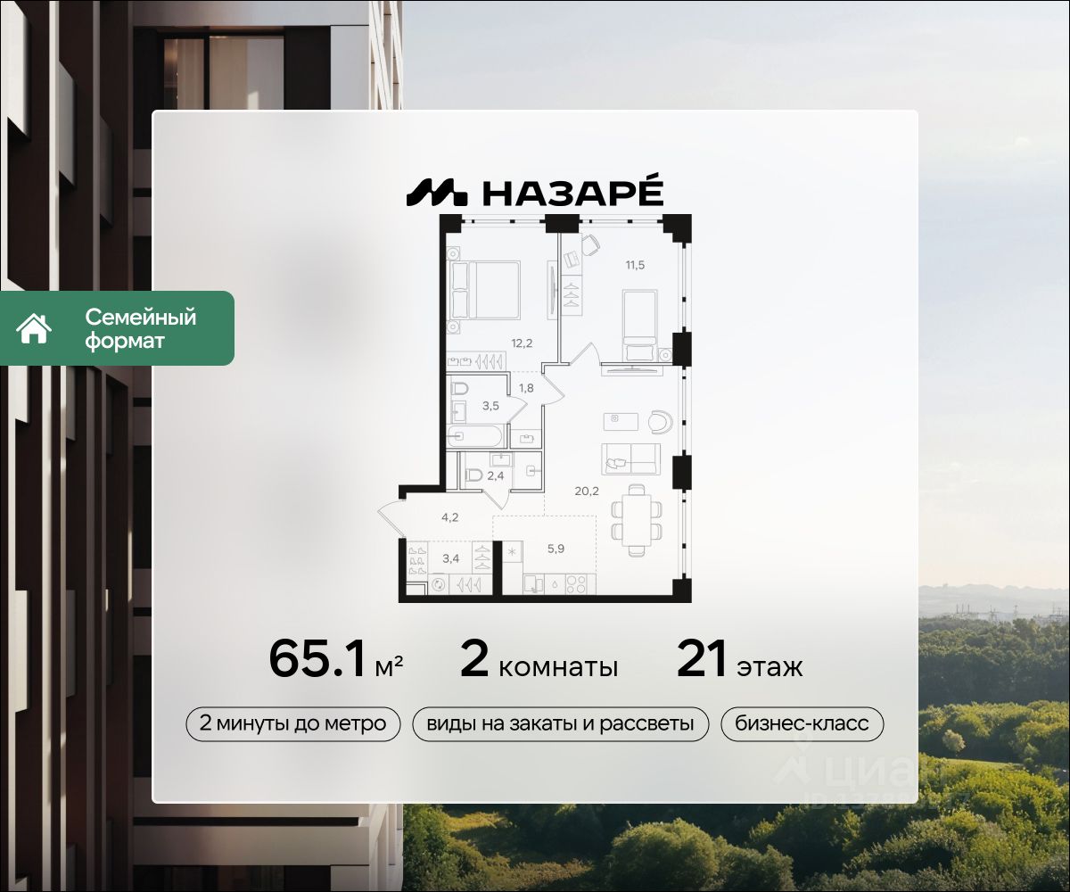 Продается 2-комнатная квартира в ЖК ''НАЗАРЕ''' Общая площадь - 65.10 Тип дома - монолитный Этаж - 21 Год сдачи - 2028 Предлагается квартира площадью 65.10 кв. м в новом современном квартале на востоке Москвы, прямо у станций метро и МЦК ''Бульвар Рокоссовского''. Квартира располагается в корпусе 5 на 21 этаже комплекса бизнес-класса ''НАЗАРЕ'''.