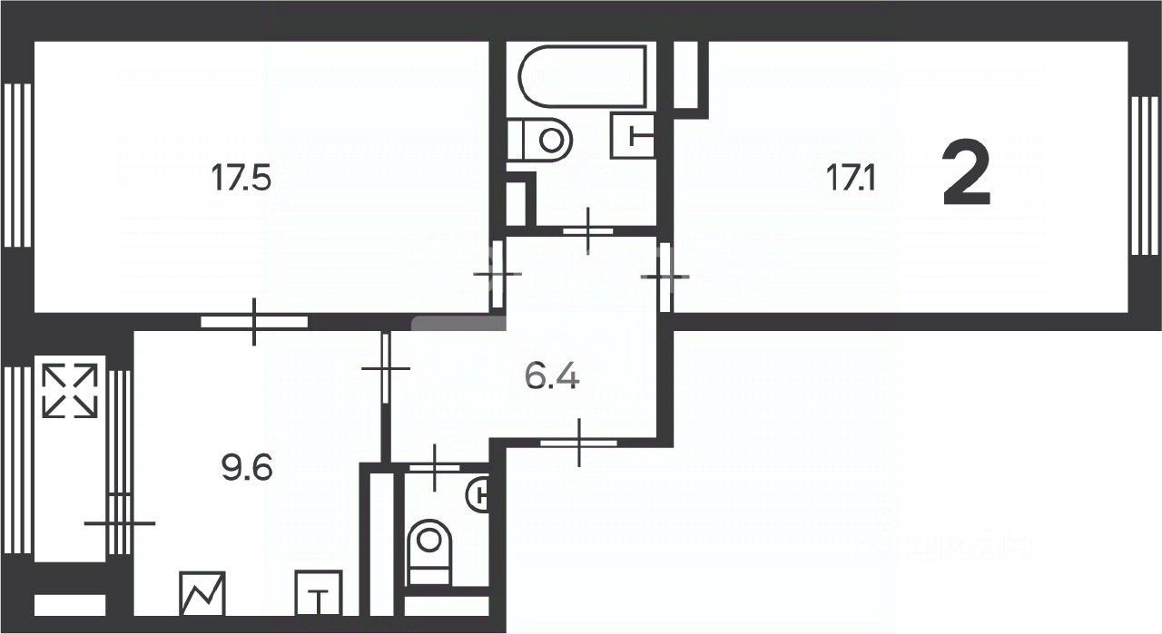 Две раздельные комнаты 17,5 кв. м. и 17,1 кв.м.