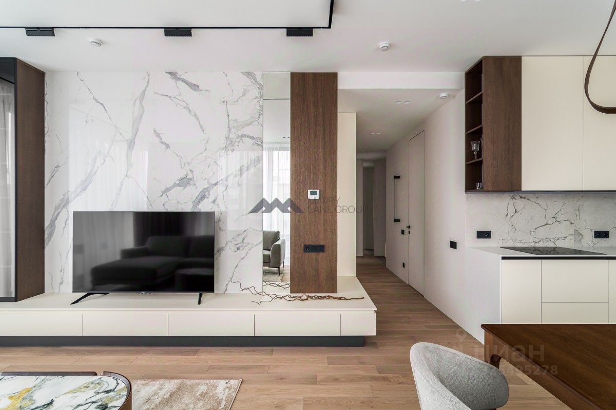 Функциональная планировка: - Объединенная кухня-гостиная - Мастер спальня с гардеробной и санузлом (ванна) - Второй санузел (душевая) - Детская комната - По проекту Предусмотрено много мест для хранения.