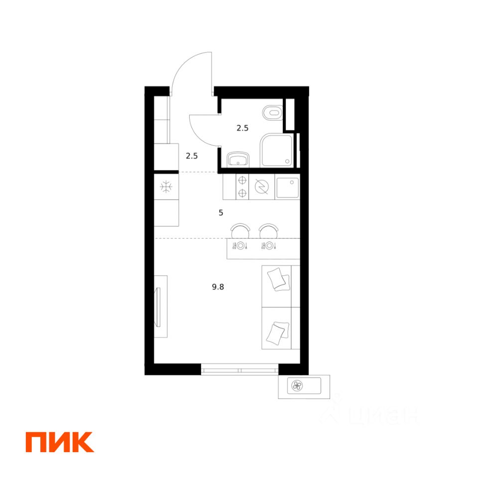 Жилая площадь9,8 м2