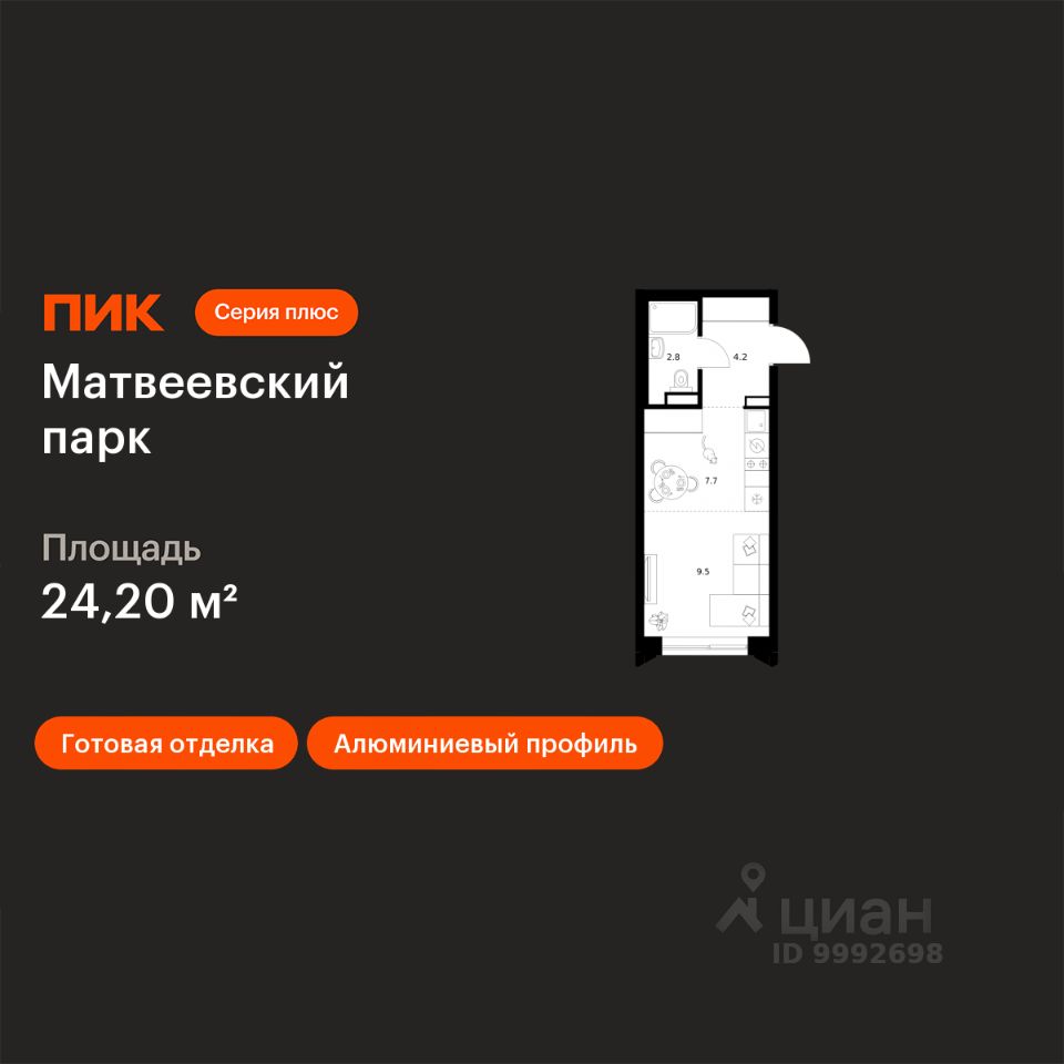 продам 1-к, Матвеевский Парк ЖК, 4.117 992 700 ₽