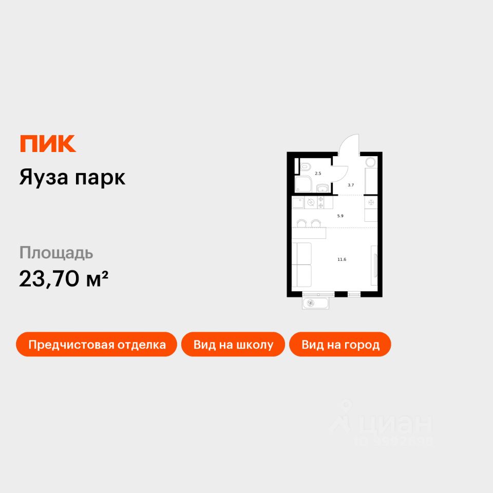 Продаётся квартира-студия площадью 23,7 кв.м на 13 этаже 24 этажного дома (Корпус 12, Секция 1) проекта ПИК Яуза парк. Светлый просторный подъезд на уровне земли, функциональная планировка, большие окна, предчистовая отделка.