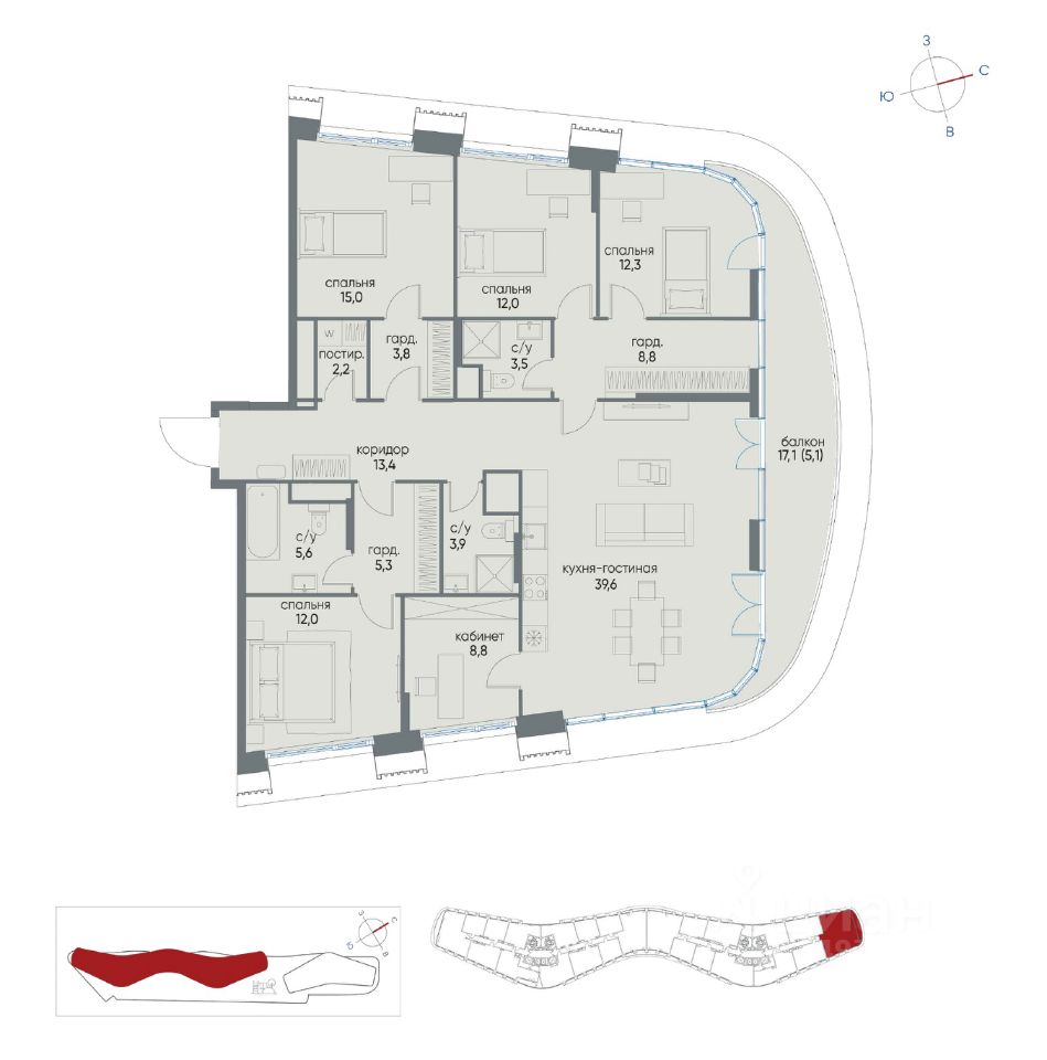 ЭКСКЛЮЗИВНАЯ ПРОДАЖА! Полная цена в ДОГОВОРЕ! Продается ВИДОВАЯ квартира Евро 6 ком — 151 м² в строящемся жк БИЗНЕС КЛАССА. ЖК ОСТРОВ 8 - от надежного застройщика ДОНСТРОЙ. _________________________________________ РЕДКИЙ ФОРМАТ КВАРТИРЫ + 8 панорамных окон в пол и красивым РАДИАЛЬНЫМ Остеклением по ВСЕМУ ПЕРИМЕТРУ КВАРТИРЫ + ТЕРРАСА - 16 м² __________________________________________ УСЛОВИЯ ПРОДАЖИ: — Продажа по договору Уступки - ПОЛНАЯ ЦЕНА в ДОГОВОРЕ!!! — 1 взрослый собственник — лично будет на сделке. — Без обременений (покупалась за НАЛИЧНЫЕ) ______________________________________________ ВЫДАЧА КЛЮЧЕЙ декабрь 2026 года! _______________________________________________ Квартира расположена: Остров 8 Корпус 2 - секция 1- этаж 11. САМЫЙ ТИХИЙ И ПРИВАТНЫЙ квартал ''ОСТРОВ -8''. Вдали от шумных дорог. Вид из окон на Запад, Север и Восток ( 3 стороны света)! _______________________________________________ ПРО ПЛАНИРОВКУ: СВОБОДНАЯ (предлагаемая застройщиком): * Кухня — гостиная — 40 м² * Спальня 1 (Мастер спальня) 12 м² + С/у 5,6 м² + Гардероб(1) 5,3 м² * Спальня 2 - 15 м² + Гардероб(2)-3,8 м² * Спальня 3 - 12,5 м² * Спальня 4 - 12 м² * Спальня 5 (кабинет) - 8,8 м² * Санузел 2 — 3,5 м² * Санузел 3 — 3,9 м² * Постирочная - 2,2 м² * Гардероб(3) 8,8 м² * Прихожая + коридор — 13,4 м² _____________________________ САМЫЙ ТИХИЙ И ПРИВАТНЫЙ квартал ''ОСТРОВ -8''. Вдали от шумных дорог. До метро 200м -2 мин пешком! Архитектура квартала будет выполнена в футуристичном стиле: бионические фасады, крупноформатное остекление и корпуса, которые словно парят над землей. Со стороны реки квартал будет окружен природным парком, куда вы сможете выбраться на пробежку или пикник. Одна из главных отличительных особенностей ''Острова. 8'' это ДВУХУРОВНЕВЫЙ ДВОР с удобным зонированием. На нижнем уровне расположатся зоны отдыха и зеленый амфитеатр, а на верхнем коворкинг и спортивная зона. Лобби будет представлять собой стильное двухуровневое пространство с лаунж-зонами, коворкингом, детским клубом и фитнес-румом. — В паркинге расположатся 321 машино-место и кладовые. В каждой квартире квартала будут установлены ОКНА В ПОЛ, из которых откроются прекрасные виды на природу заповедника и рукотворные ландшафты центрального бульвара. Жителям ''Острова. 8'' в полной мере будет доступна вся инфраструктура проекта. К тому моменту, как завершится строительство квартала, уже будут функционировать школа, детский сад и инфраструктура соседних кварталов. В 1 минуте ходьбы от ''Острова. 8'' находится станция метро ''Терехово''.