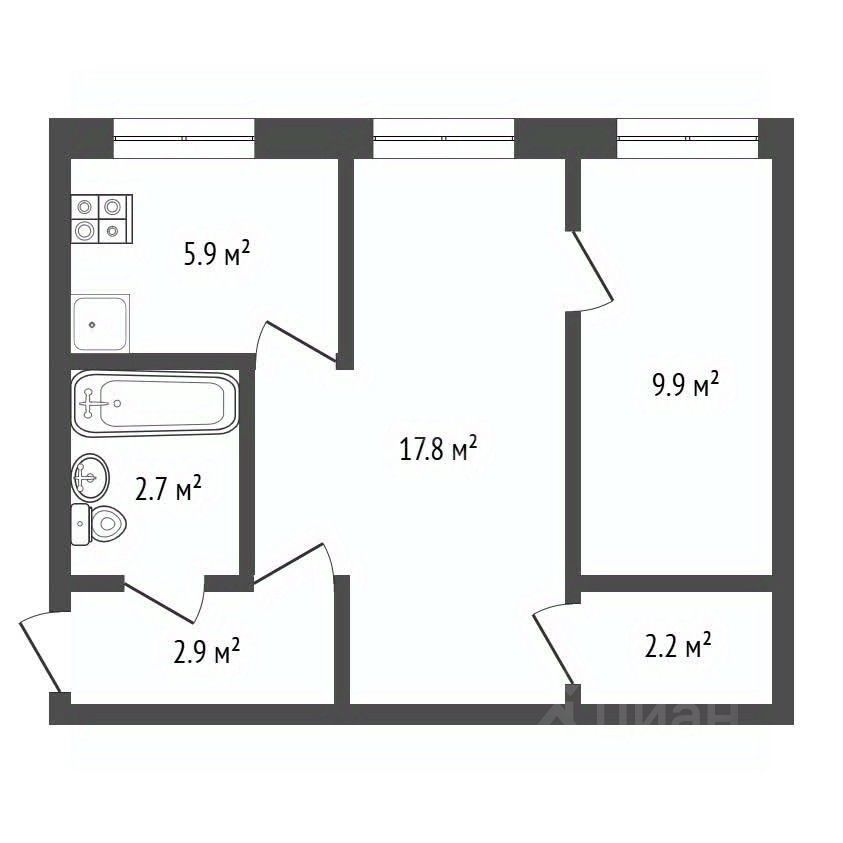 Вам предлагается светлая и тёплая 2-комнатная квартира площадью 43,8 м², расположенная на первом этаже кирпичного дома.