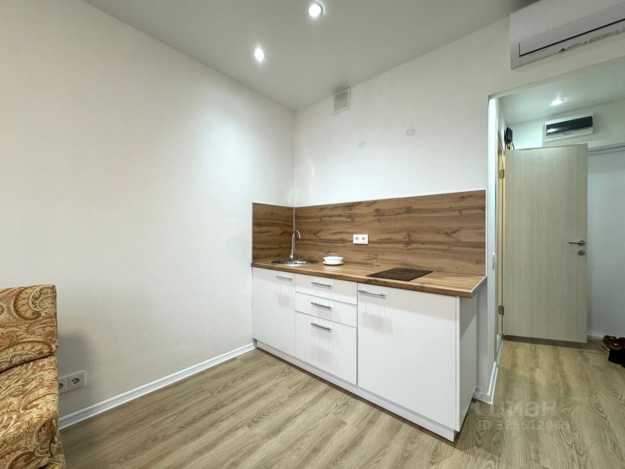 Квартира радует современным евроремонтом и продуманной планировкой. В студии есть все необходимое для комфортного проживания: кухонная мебель, мебель в комнате, а также вся необходимая техника — кондиционер, холодильник и стиральная машина. Санузел совмещенный, оборудован современной душевой кабиной. Благодаря окнам, выходящим во двор, в квартире всегда тихо и спокойно.