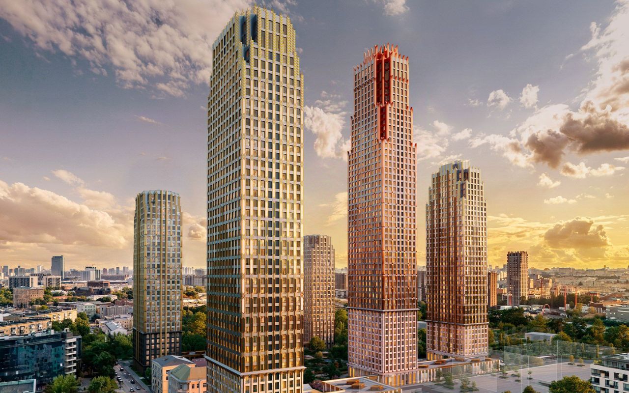 Современный премиум-квартал ЭРА на Дербеневской набережной, формирующий новый архитектурный облик Даниловского района Москвы. Жилой комплекс из шести высотных корпусов выполнен в актуальной интерпретации стиля ар-деко, где ритмичные линии фасадов, натуральный мрамор и изысканные орнаменты создают гармоничный и запоминающийся образ.
