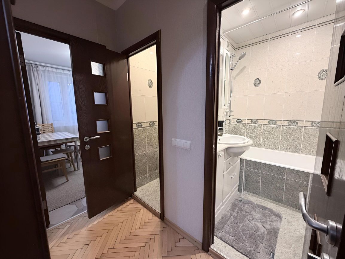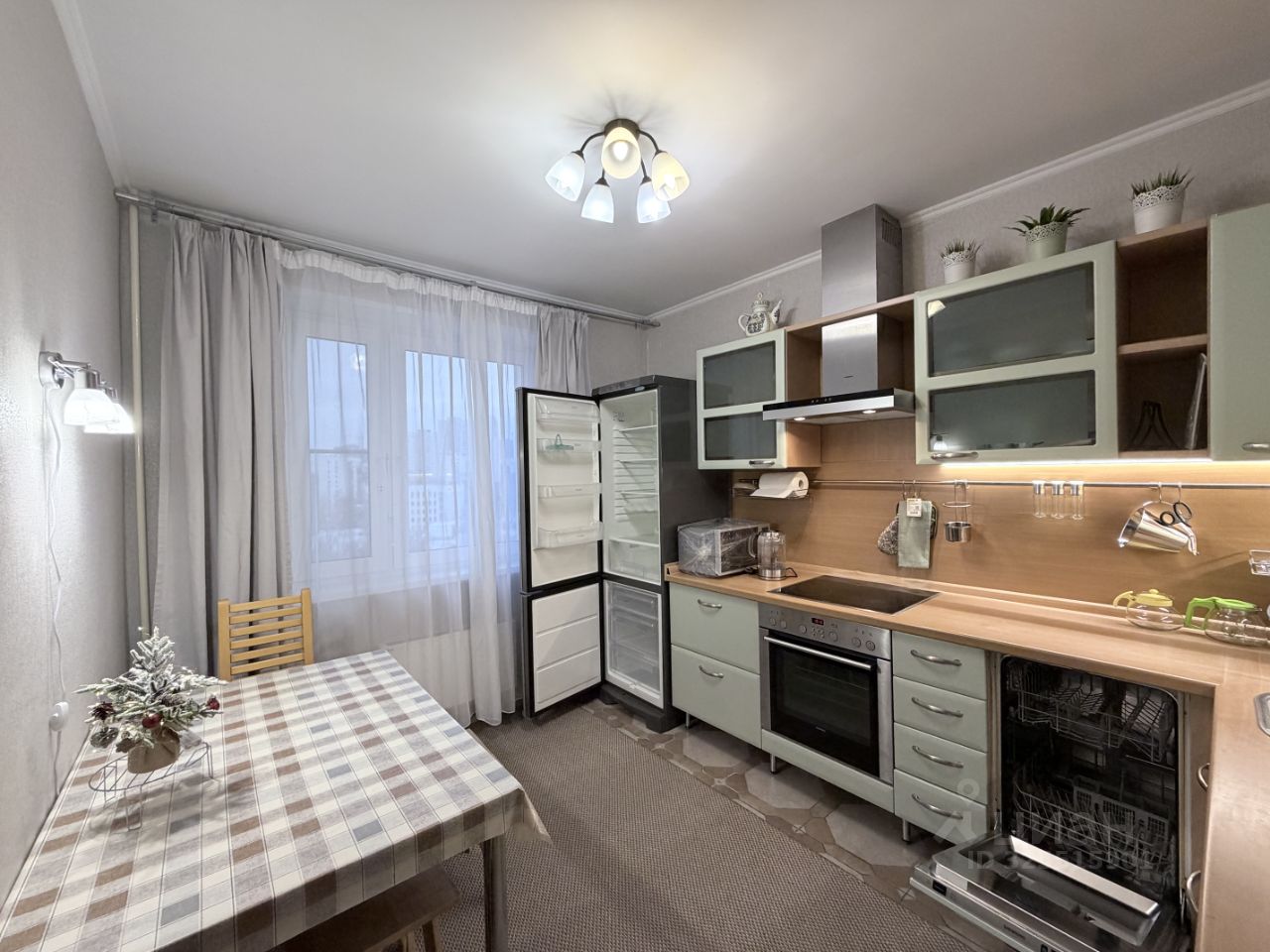 В квартире выполнен евроремонт. Пространство обставлено мебелью как в комнатах, так и на кухне, поэтому можно сразу заезжать и жить. Для вашего удобства в наличии вся необходимая техника: новый кондиционер, холодильник, посудомоечная и стиральная машины, 2 телевизора. Санузел раздельный, с ванной. Имеется балкон. Окна, с видом на обустроенный двор, в котором расположены детский сад и школа — переходить дорогу не требуется, всё максимально безопасно для детей. Через дорогу находится парк с детскими площадками и катком.