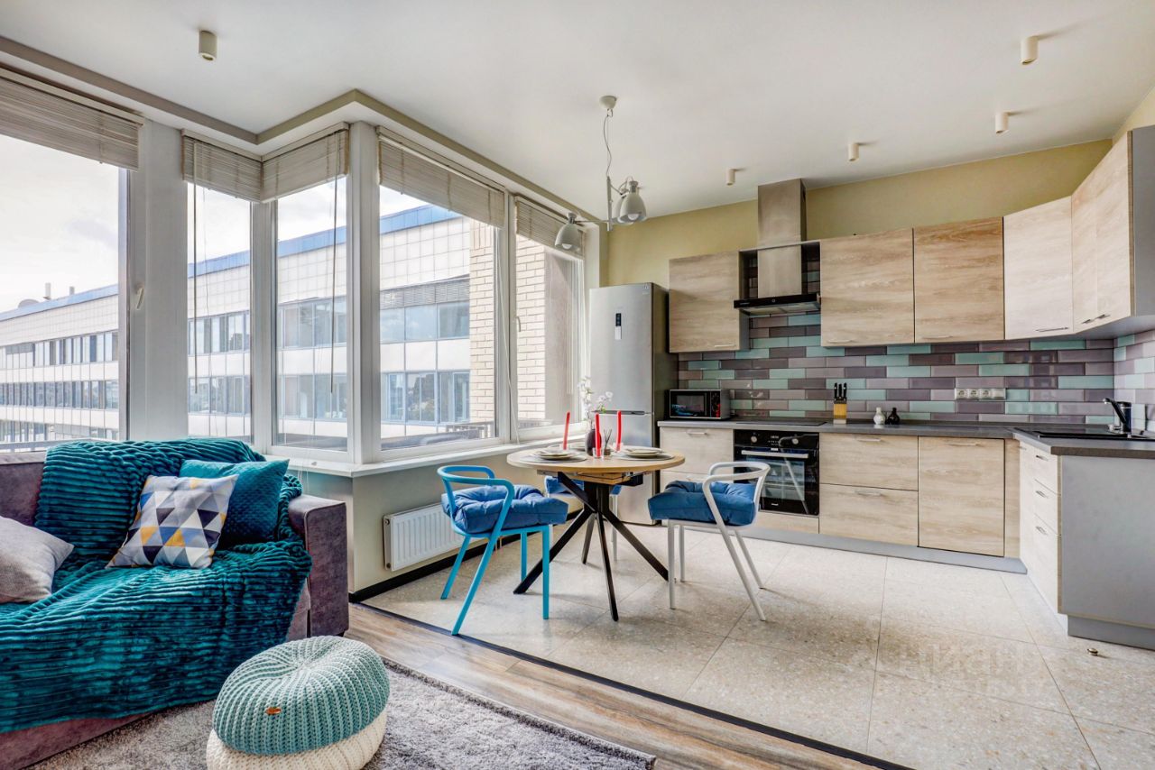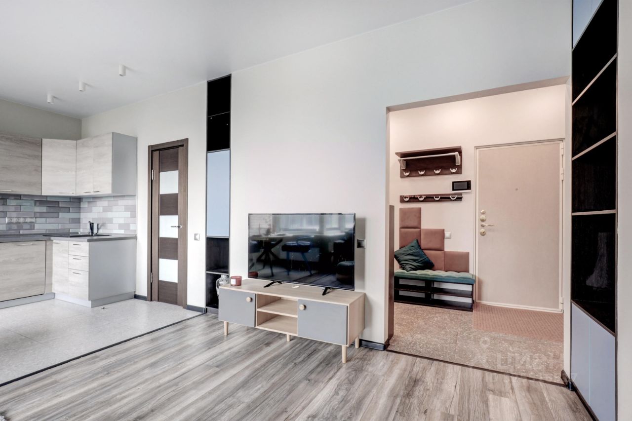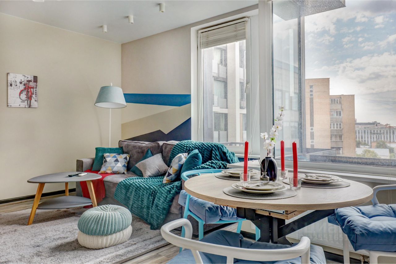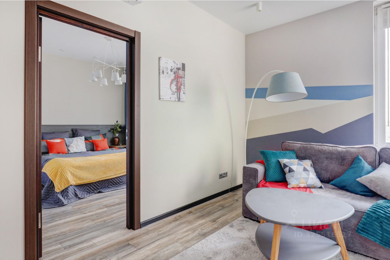 Просторный апартамент с отдельной спальней и гардеробной. Много места для хранения, большая ванная комната, в зоне гостиной много места для рабочего стола при необходимости. Красивый вид из окна в сторону центра (особенно вечером когда включается подсветка зданий). В спальне большая двуспальная кровать на 180. Окна выходят на южную сторону, в апартаменте очень светло.