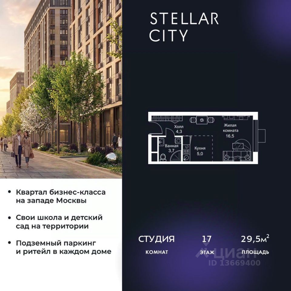 Продается квартира от надежного застройщика Tashir Estate в квартале бизнес-класса Stellar City в ЗАО Москвы.