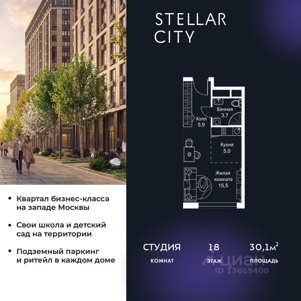 Продается квартира от надежного застройщика Tashir Estate в квартале бизнес-класса Stellar City в ЗАО Москвы.