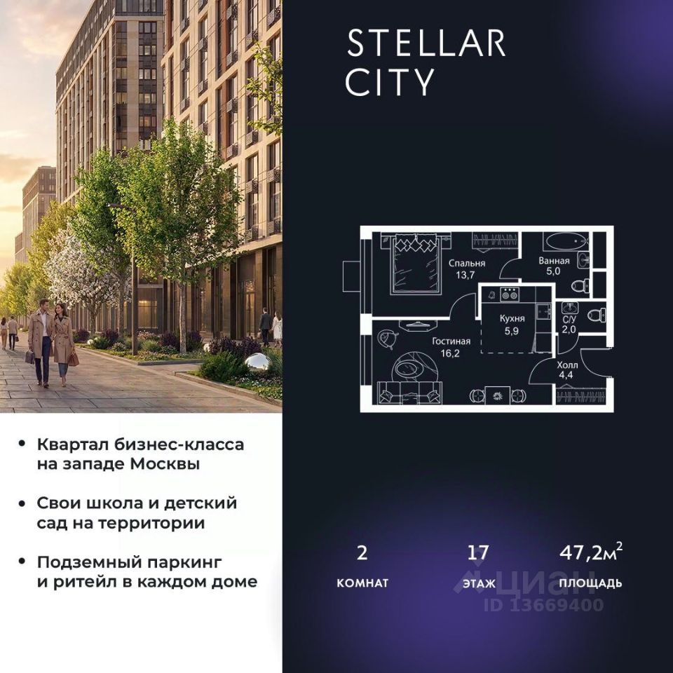 Продается квартира от надежного застройщика Tashir Estate в квартале бизнес-класса Stellar City в ЗАО Москвы.