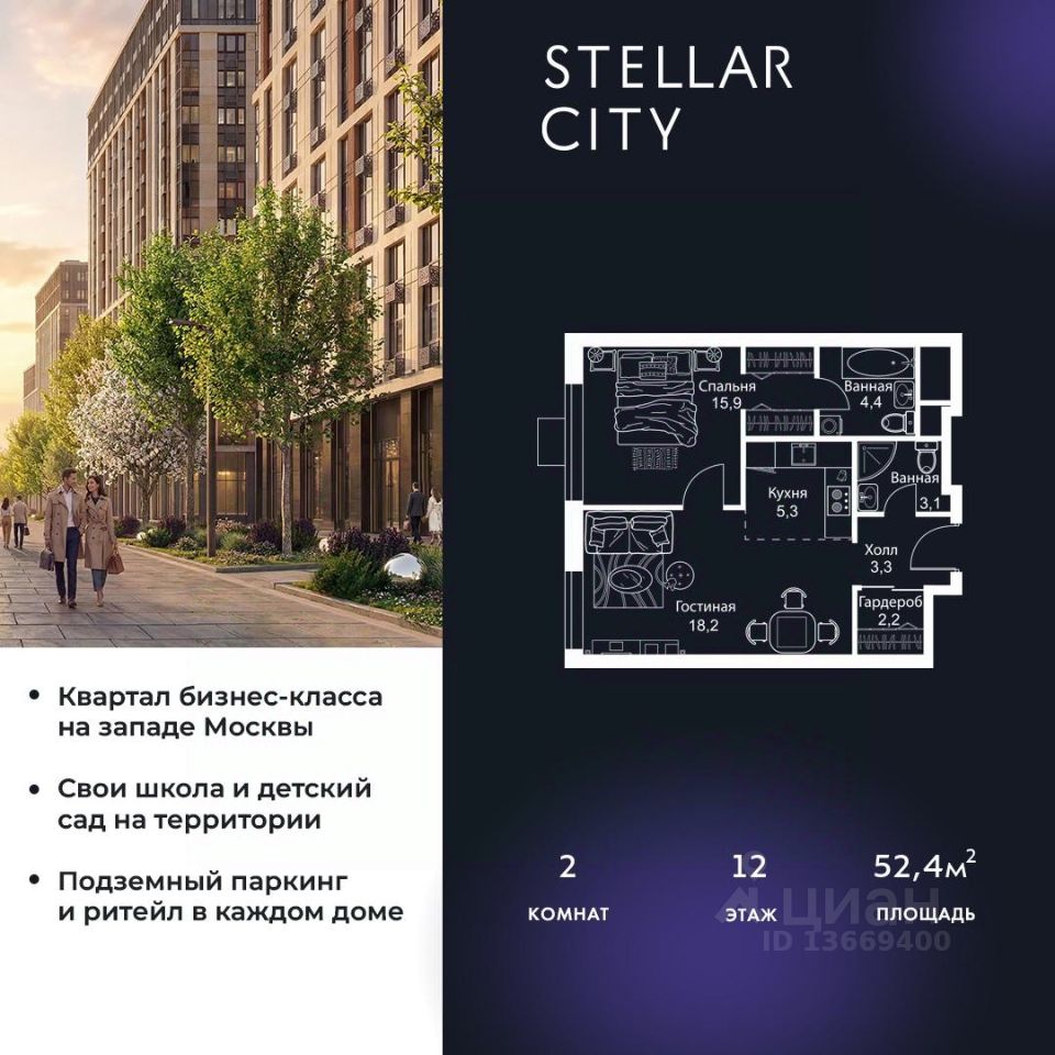 Продается квартира от надежного застройщика Tashir Estate в квартале бизнес-класса Stellar City в ЗАО Москвы.