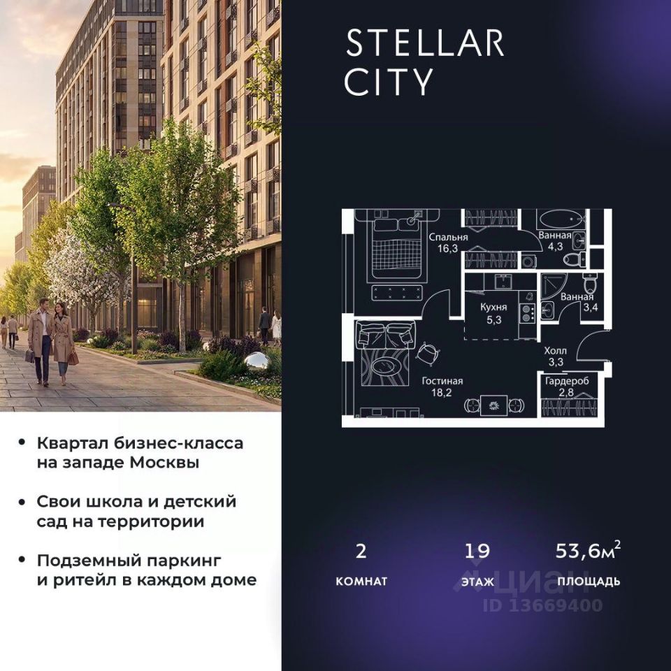 Продается квартира от надежного застройщика Tashir Estate в квартале бизнес-класса Stellar City в ЗАО Москвы.