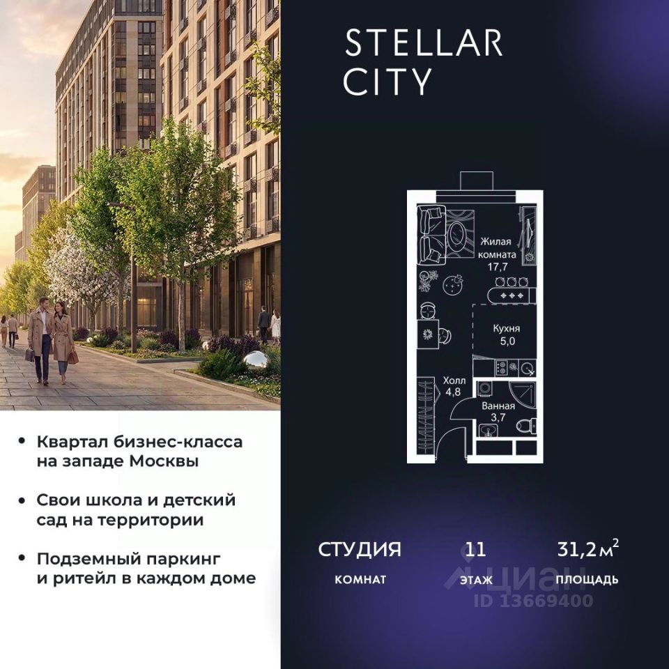Продается квартира от надежного застройщика Tashir Estate в квартале бизнес-класса Stellar City в ЗАО Москвы.