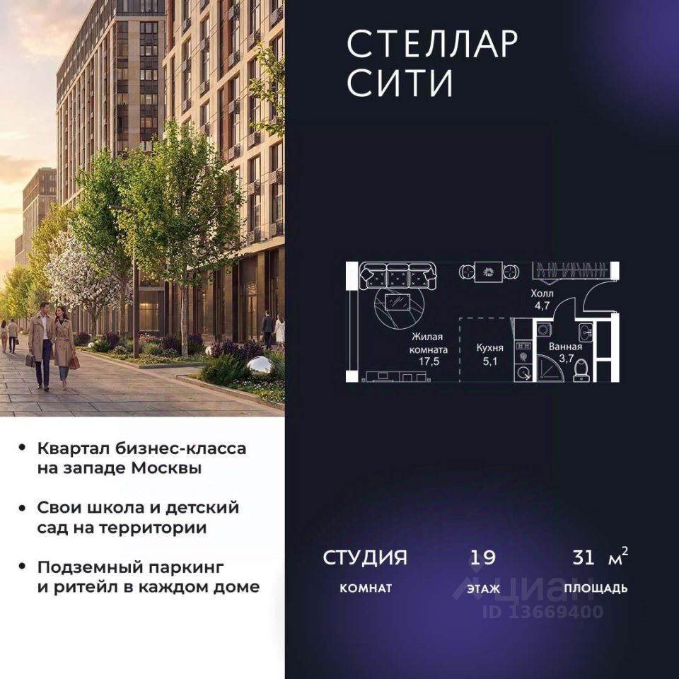 Продается квартира от надежного застройщика Tashir Estate в квартале бизнес-класса Stellar City в ЗАО Москвы.