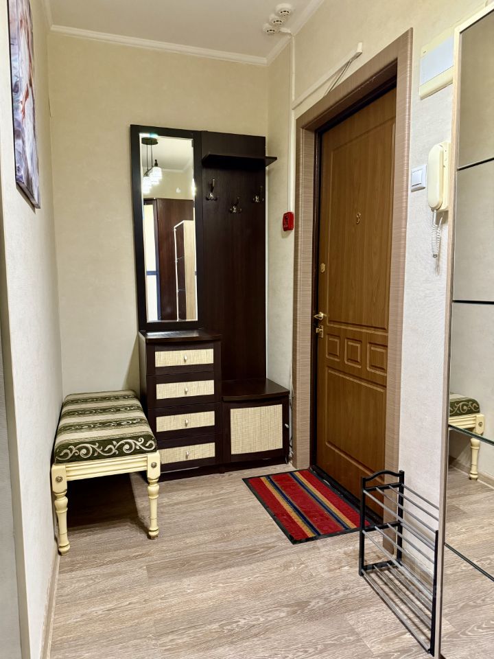Квартира обставлена всей необходимой современной мебелью и техникой: кондиционер, холодильник, посудомоечная машина, телевизор и стиральная машина.