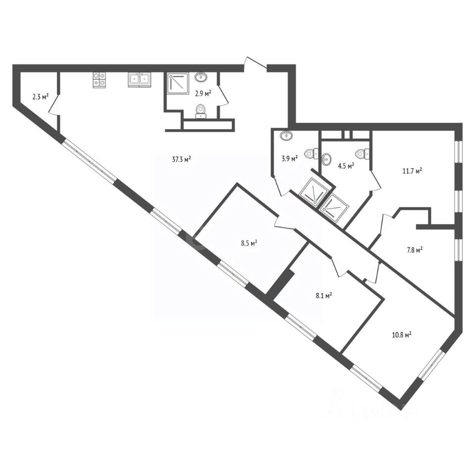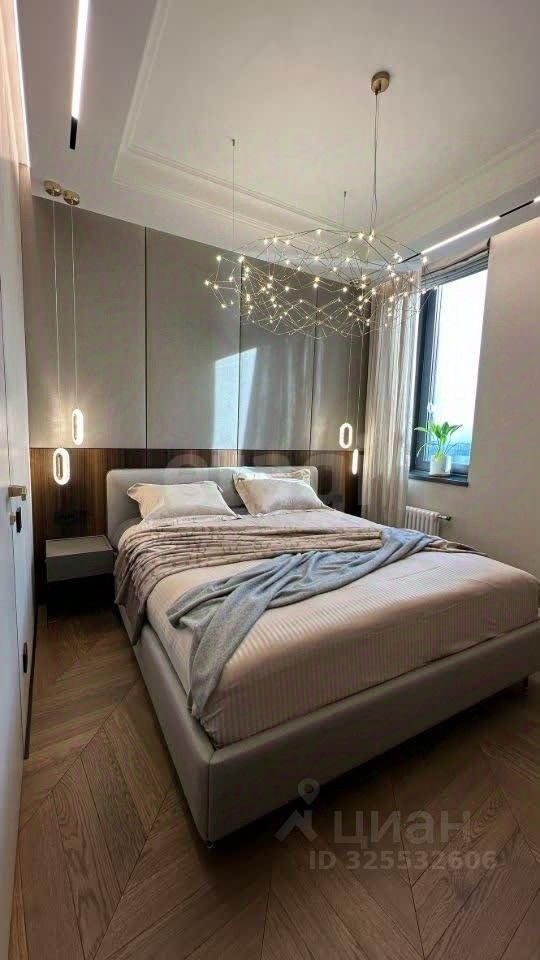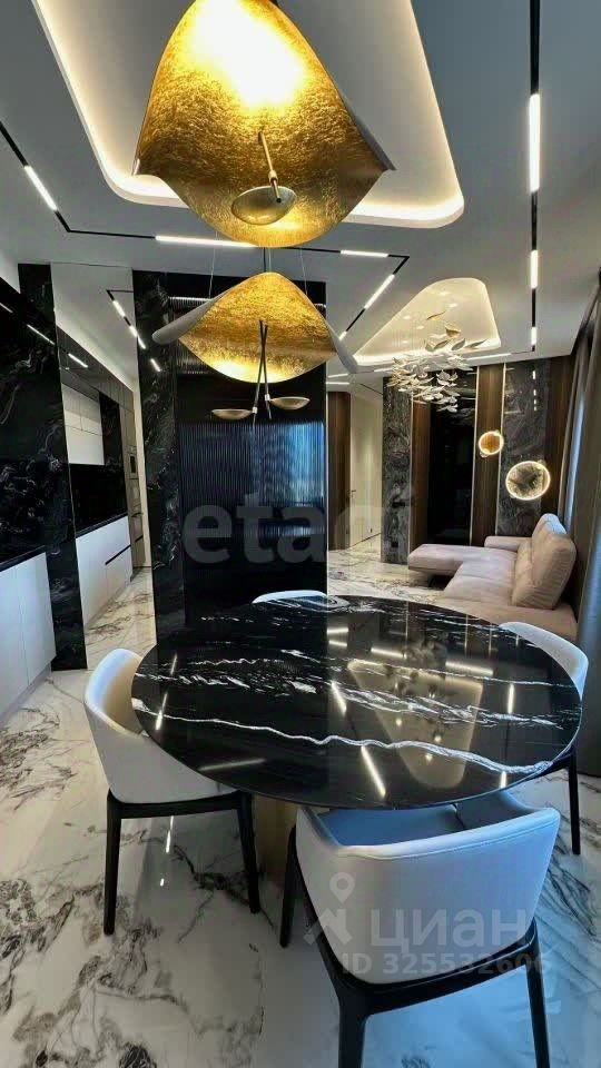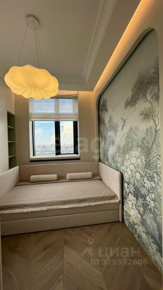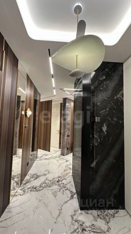 Панорамное остекление в зоне кухни-гостиной открывает впечатляющие виды на Москву и деловой центр ''Москва-Сити''. Планировка функциональна и включает три изолированные спальни, одна из которых — мастер-спальня с собственной гардеробной и санузлом. Всего в квартире три санузла, отдельная гардеробная и кладовая. Отделка выполнена с использованием натуральных материалов: мрамора, гранита и шпона эвкалипта. Объект полностью готов к проживанию: установлена премиальная встроенная техника, система кондиционирования, теплые полы и электроприводы на шторы. Транспортная доступность высокая: в пешей доступности находятся станции МЦК и МЦД Шелепиха, метро ''Москва-Сити'' и ''Деловой центр''. Через теплый переход можно попасть в ТЦ ''Афимолл'', рядом расположена остановка аэроэкспресса до Шереметьево. В шаговой доступности — набережная, а во дворе комплекса работают частная школа и детский сад. Внутренняя инфраструктура ЖК включает магазины, кафе, фитнес-центры и благоустроенные дворы без автомобилей.