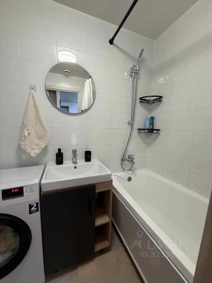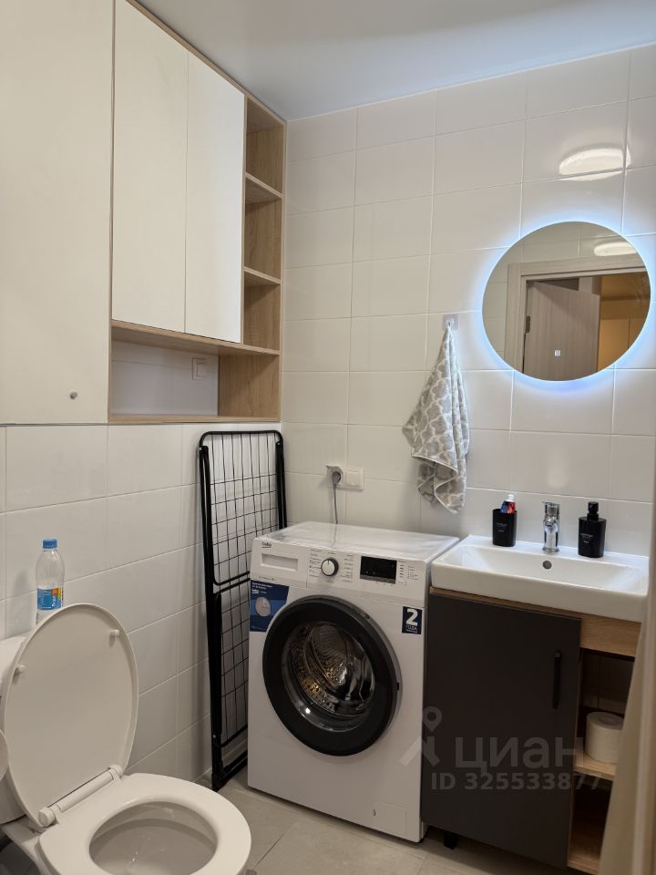 В совмещенном санузле имеется ванная, функциональный шкаф, раковина с тумбой, установлена стиральная машина Beko на 6 кг, планируется установка полотенцесушителя с широким выбором температурных режимов.